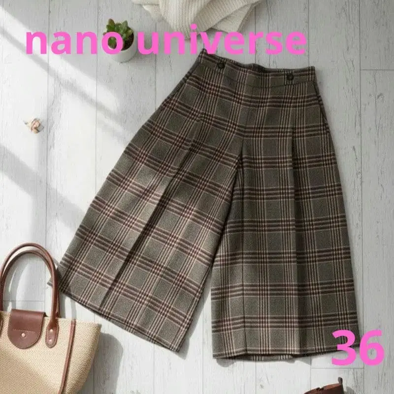나노 유니버스 체크 무늬 와이드 팬츠 가우초 브라운 예쁜 코디