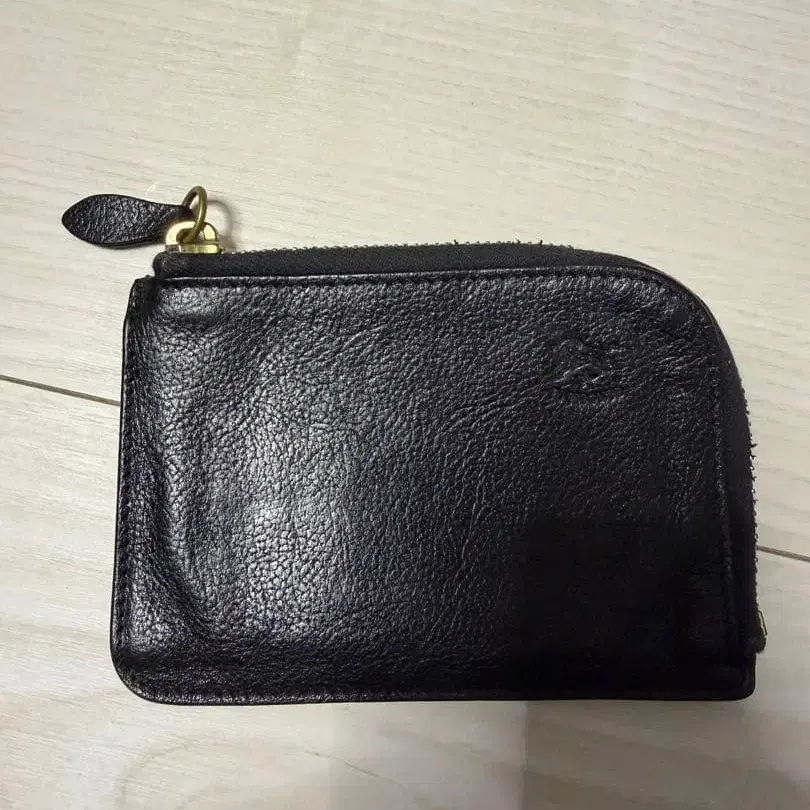 일비종떼 L자 지퍼 미니 지갑 가죽 로고 각인 블랙