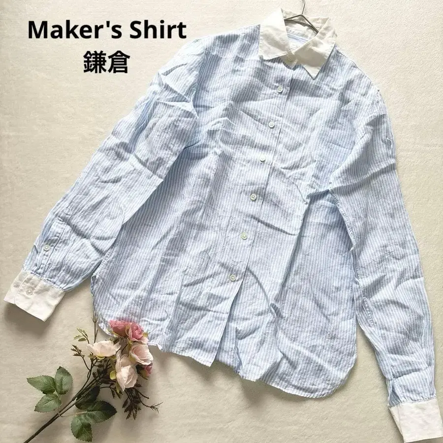 메이커즈 셔츠 카마쿠라 린넨 마 100% 스트라이프 긴팔 셔츠 블라우스