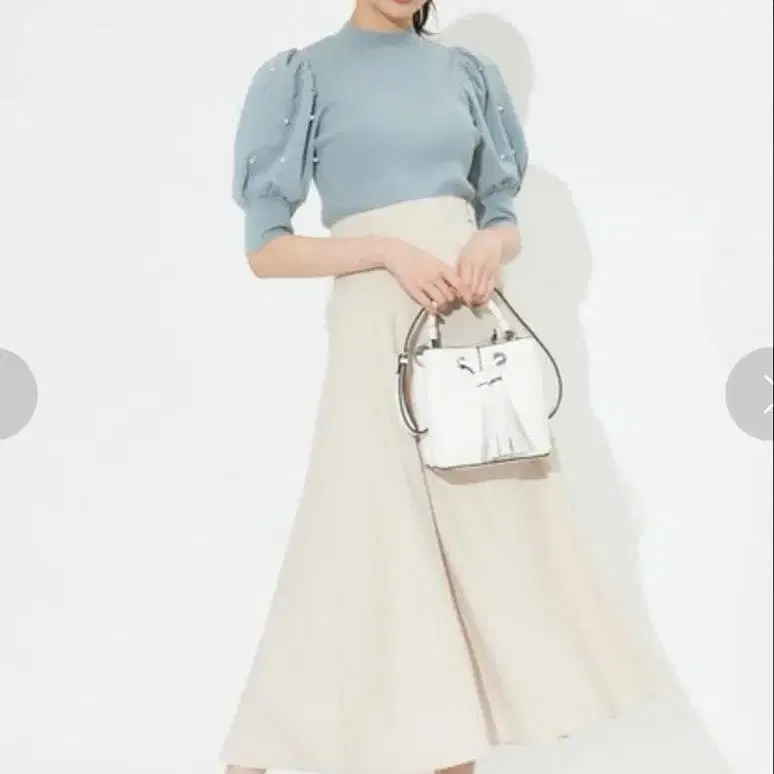 사이드 더블 버클 벨트 플레어 스커트 swingle 아이보리 손세탁 가능