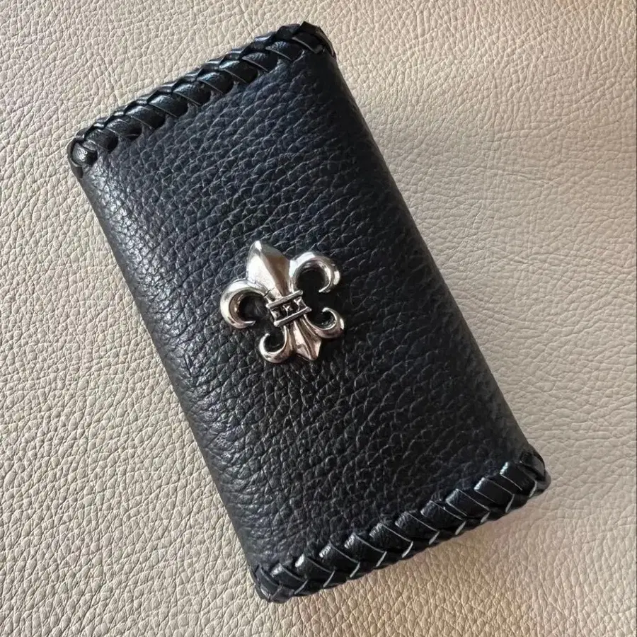 가죽 키케이스 플뢰르 드 리스 천연 가죽 키케이스 4연 핸드메이드