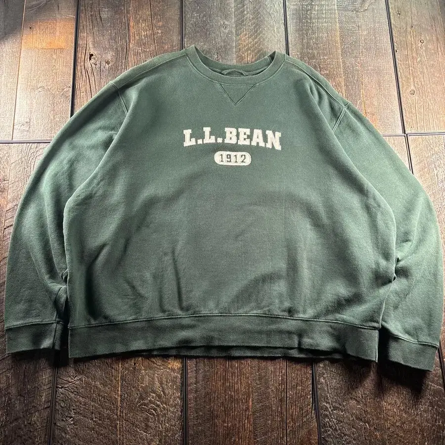 구제 LLBEAN V 가제트 2XL 맨투맨 그린 빅 로고 자수 로고