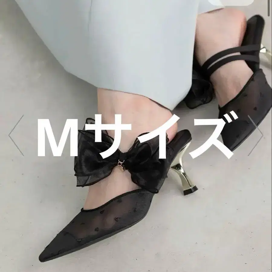 RANDA 하트 쉬폰 리본 하트 뮬 펌프스 M 사이즈