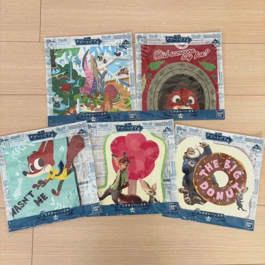 미개봉 새상품 주토피아 디즈니 제일복권 F상 타월 손수건 5종 세트