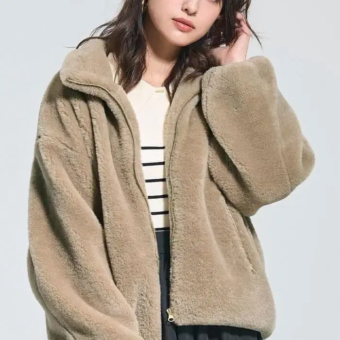 coca 인조 모피 스탠드 카라 자켓 베이지 M 사이즈