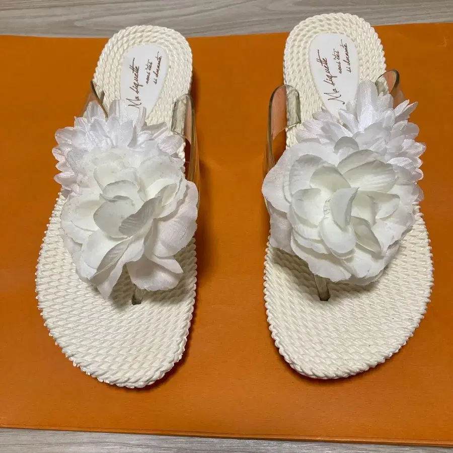 화이트 플라워 장식 플랫 샌들