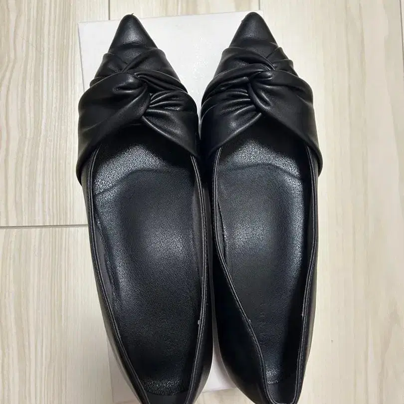 블랙 꼬임 디자인 플랫 펌프스