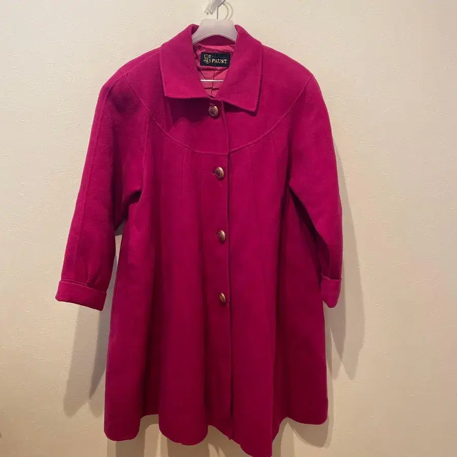 PAUST 핑크 A라인 롱 코트 울 9호