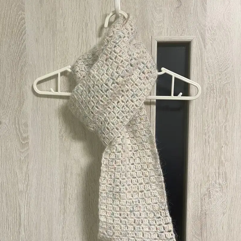 손뜨개질 화이트 계열 니트 머플러 격자 무늬