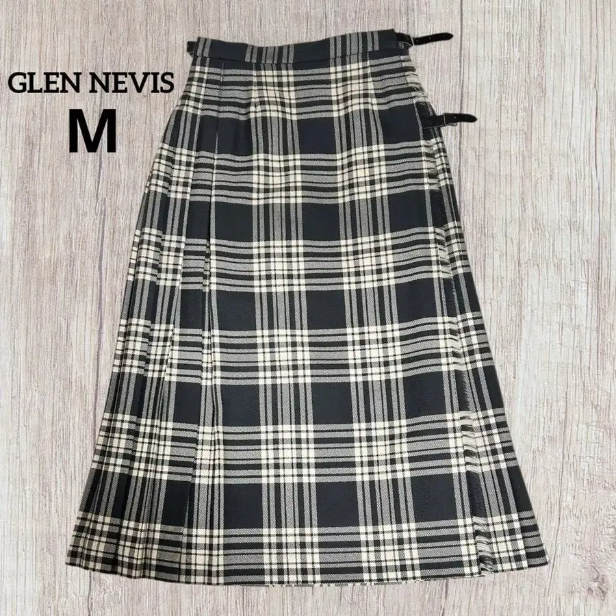 • 새상품급 GLEN NEVIS 타탄 체크 롱 플리츠 랩스커트 L