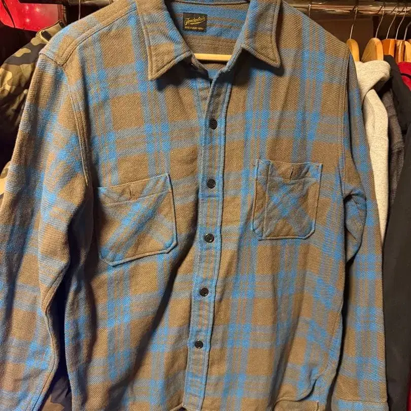 텐더로인 브라운 블루 체크 플란넬 셔츠