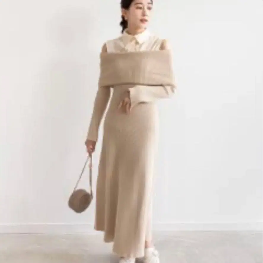 RANDA 셔츠 도킹 오프숄더 니트 원피스