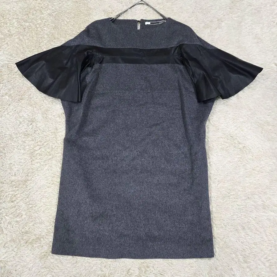 새상품급 사카요리 울 캐시미어 혼방 가죽 양가죽 플레어 슬리브 원피스