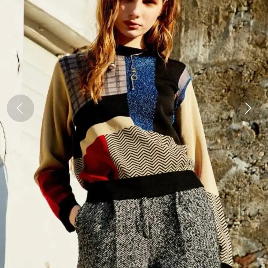 [ Design ] 다양한 소재, 패턴을 조합한 패치워크풍 디자인의 니트 풀오버.