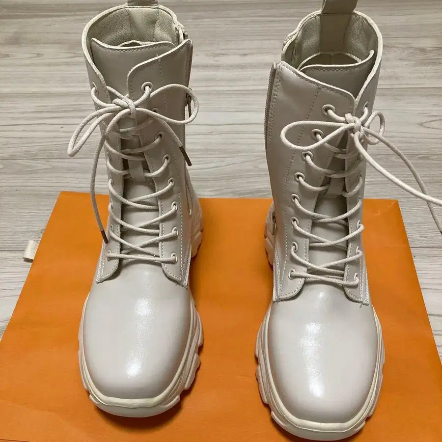 로리즈팜 화이트 통굽 부츠 지퍼 포함