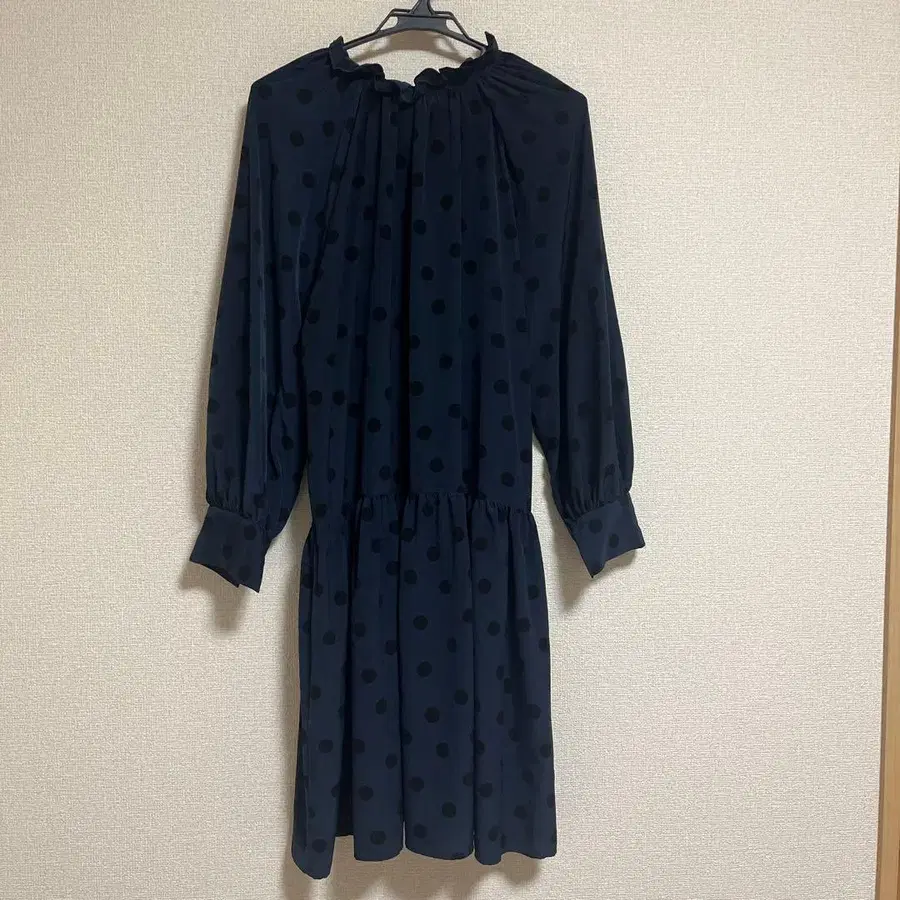 La TOTALITE 긴팔 원피스 도트 무늬 네이비 블랙 도트 패턴