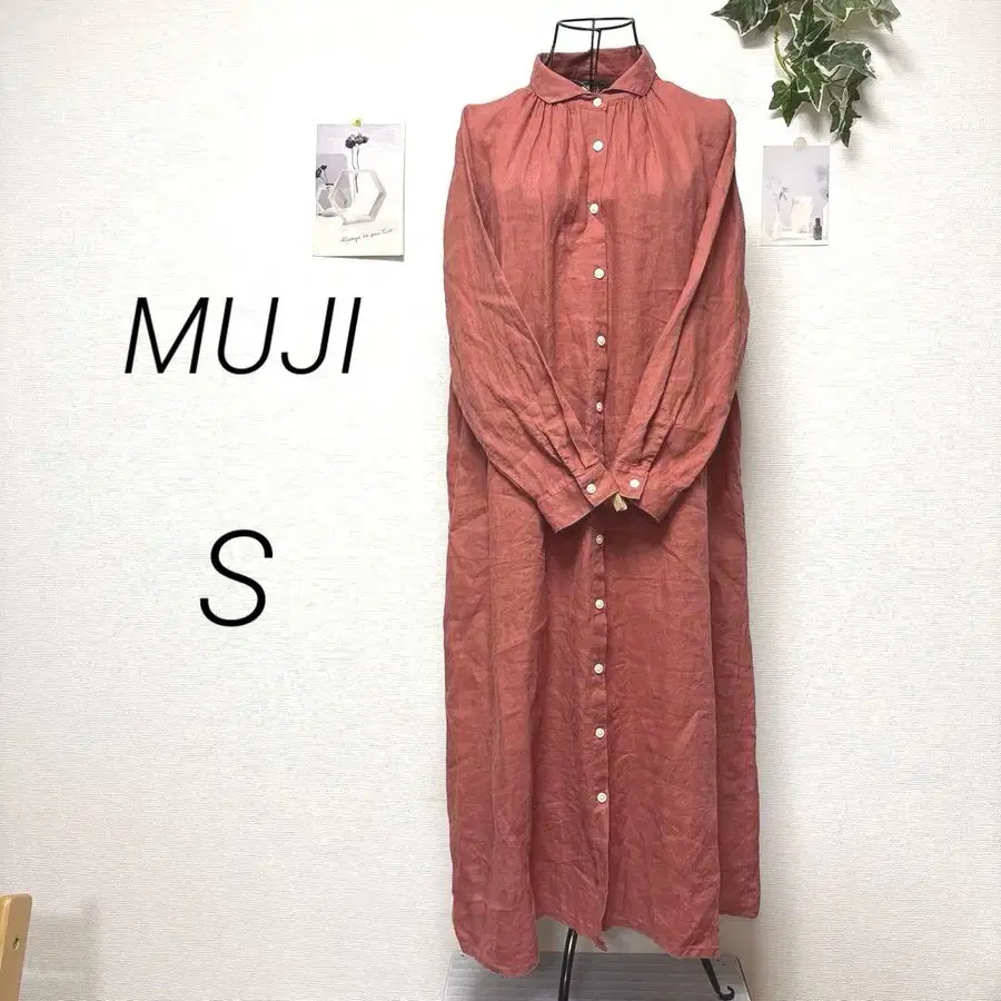 10884 MUJI 무인양품 린넨 셔츠 원피스 S 무지 캐주얼