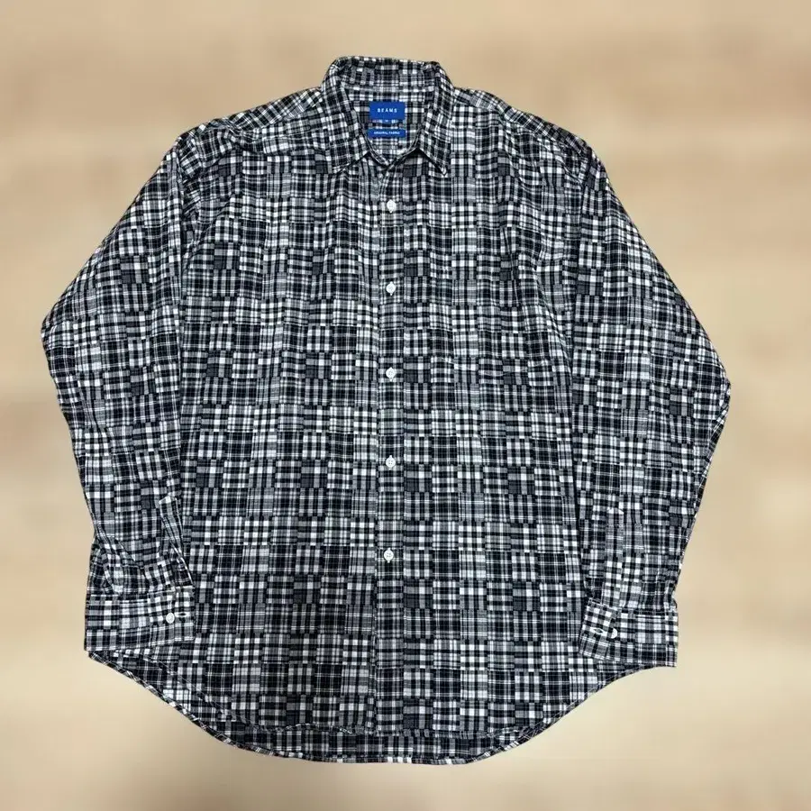 패치워크풍 원단을 사용한 BEAMS 셔츠입니다.