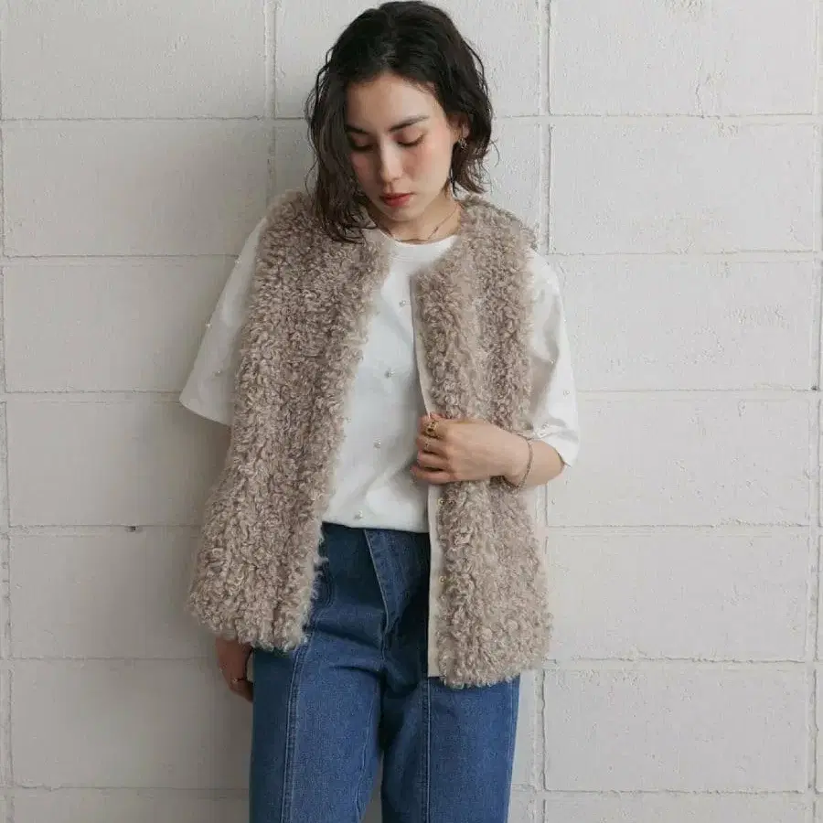 미사용 택 포함 부즈루드 퍼 사이드 절개 바이컬러 베스트