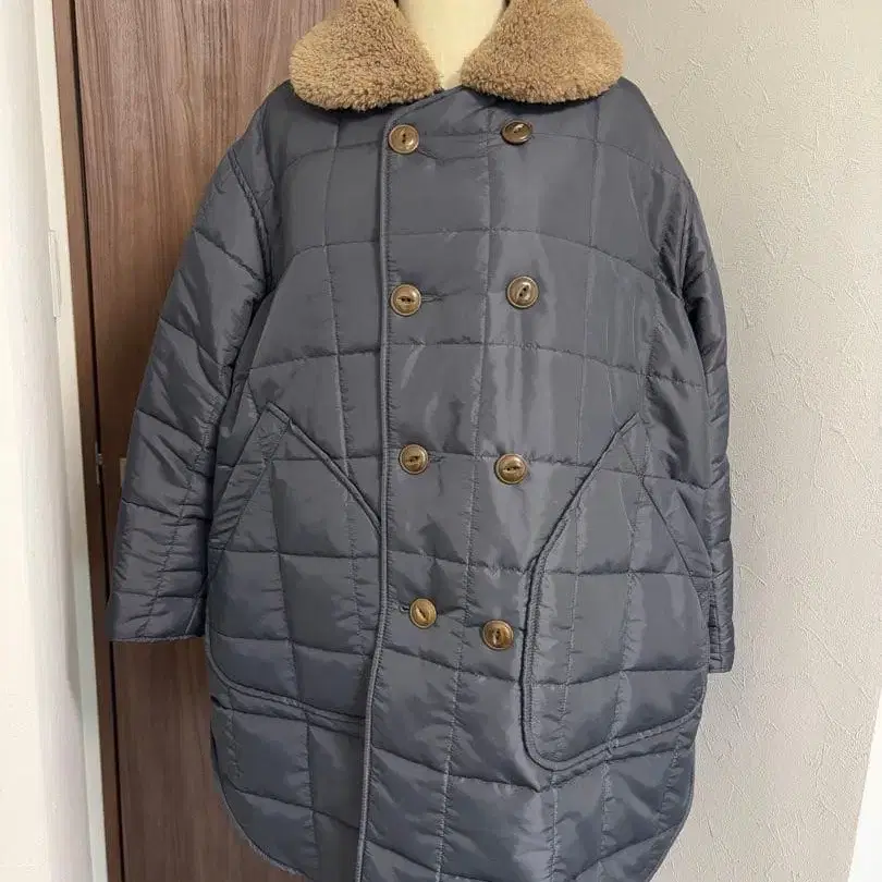 • 45R 압축 울 더플 코트 바이컬러 루즈한 사이즈 3
