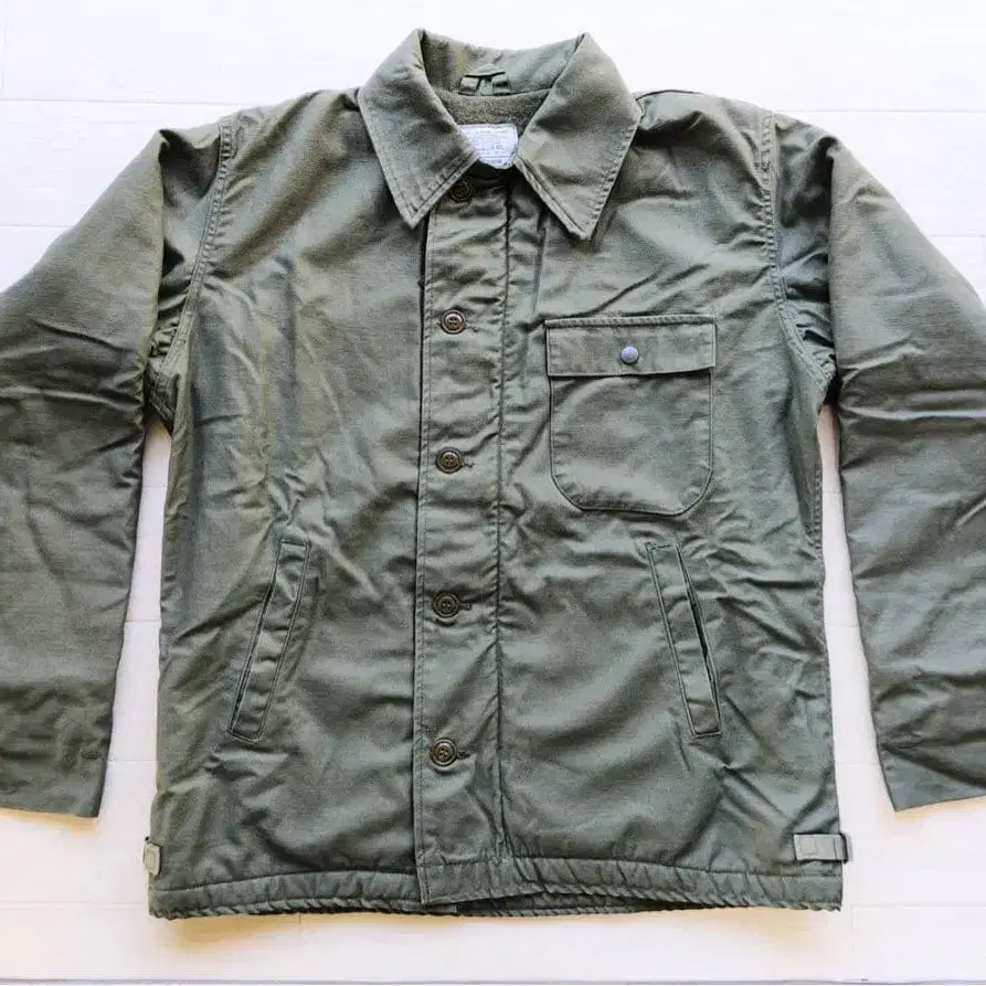 방문해 주셔서 감사합니다. 1989년 납품된 미 해군(U.S.NAVY) 실물 A-2 덱 자켓입니다. 구제 의류점에서 [미사용에 가까운] 상태로 구매 후, 한 번도 착용하지 않고 의상 케이스에 넣어 어두운 곳에 보관했습니다. 사이즈 표기 MEDIUM(38-40) 실측치수 (평평하게 놓음) 어깨 너비 약 49cm 가슴 너비 약 59cm 기장 약 71cm 소매 길이 약 65cm 개인 측정으로 인해 약간의 오차가 있을 수 있으니 이해 부탁드립니다. [ 상태 · 컨디션 ] 전체: 원단의 탄력, 색상 모두 양호하며, 데드스탁에 가까운 민트급 컨디션입니다. 안쪽 보아의 뭉침이나 얼룩도 보이지 않습니다. 특기사항(리브 가공): 방한성을 높이기 위해 고무줄을 통과시키려고 양쪽 소매 리브 안쪽에 작은 구멍을 냈습니다. (사진 9장 참조) 벌레 먹은 파손이 아니라 의도적인 가공입니다. 안쪽이라 외부에서는 전혀 보이지 않고 착용에도 지장이 없지만, 신경 쓰이는 분은 구매를 자제해주세요. 그 외에는 데드스탁급의 깨끗한 상태입니다. 이 연대 특유의 올리브 그린 색상과 M 사이즈라는 골든 사이즈가 매력입니다. 리브 가공을 제외하면 이 정도로 새상품급인 것은 드물다고 생각합니다. 실용성을 중시하시는 분이나 상태 좋은 덱 자켓을 찾으시는 분께 추천합니다.