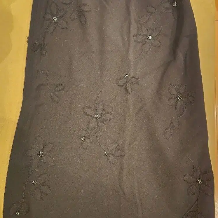 꽃무늬 자수 블랙 미디 스커트 38