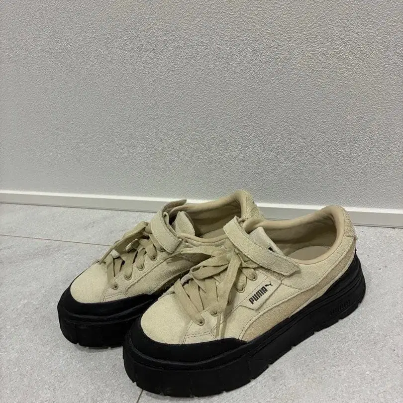 [새상품급] PUMA 통굽 스니커즈 베이지/블랙