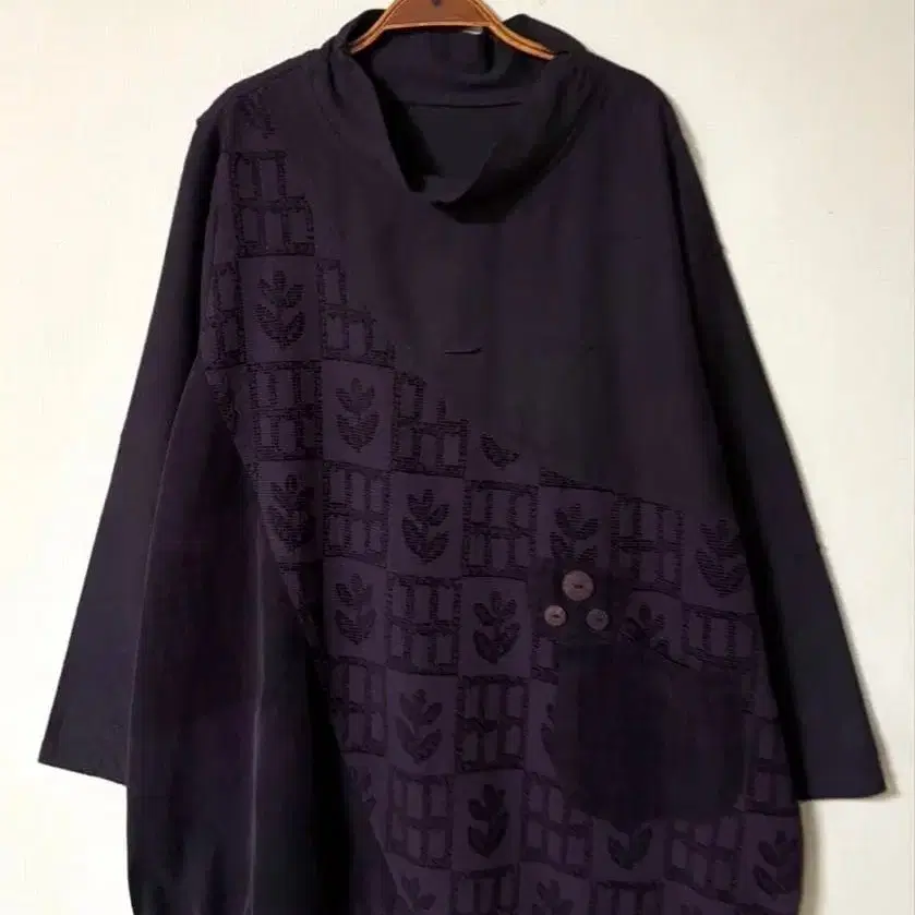 깊은 퍼플 절개 디자인 튜닉 루즈핏