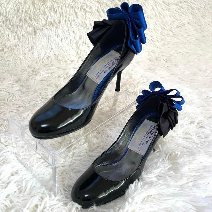 [ 새상품급 ] [ Pippi ] 백 프릴 리본 에나멜 펌프스 블랙/블루