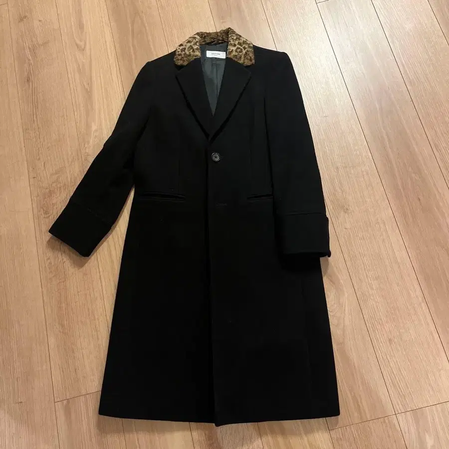 EDITION 블랙 체스터 코트 레오파드 옷깃