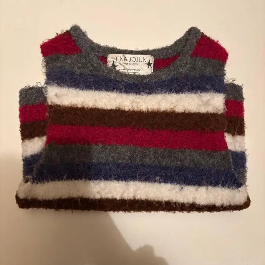 TINA JOJUN 멀티 컬러 스트라이프 슬리브리스 스웨터