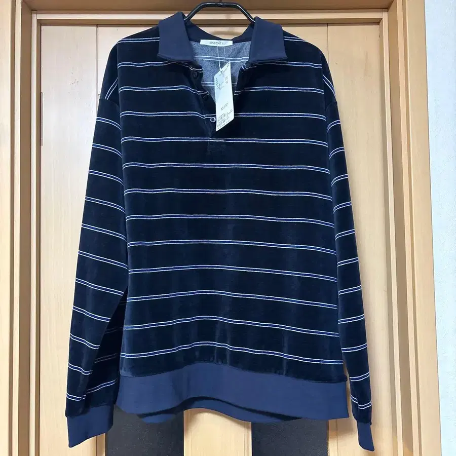 새상품 디스코트 네이비 벨로아 보더 폴로 L 사이즈