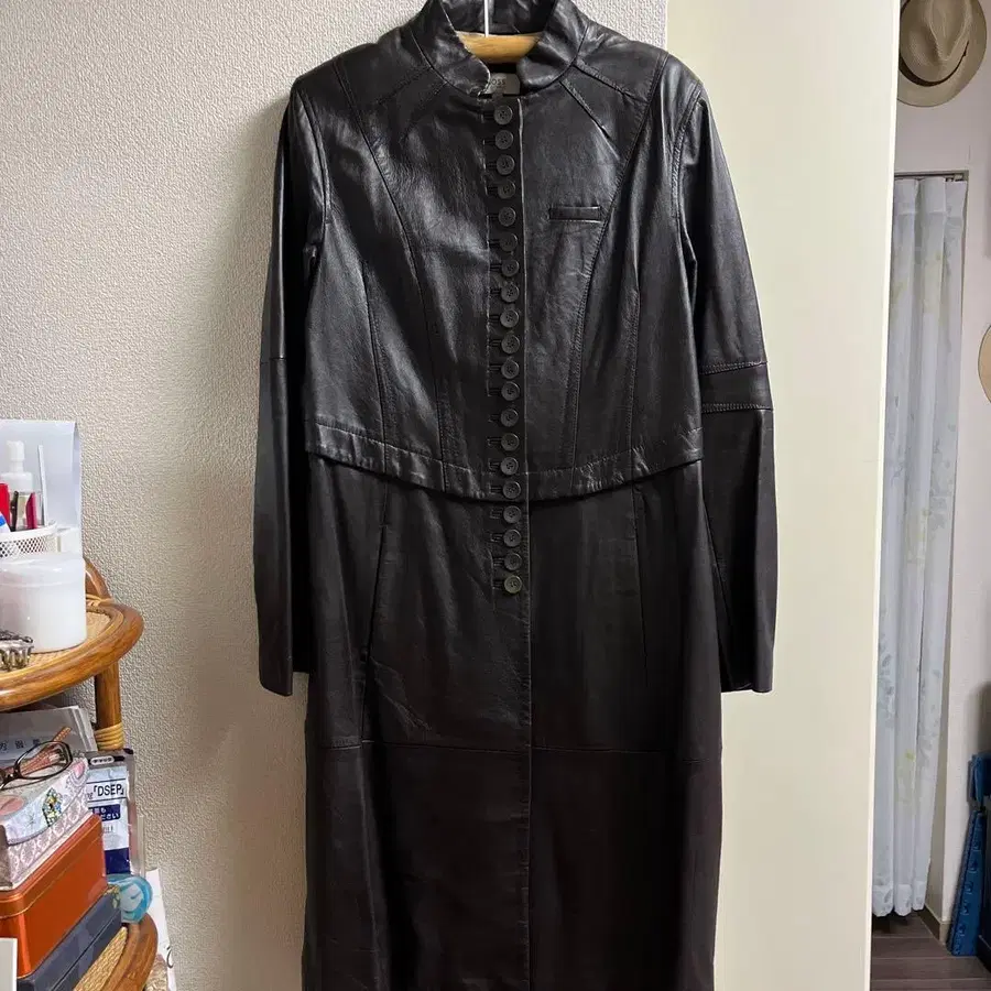 BOSS 짙은 브라운 롱 가죽 자켓 40