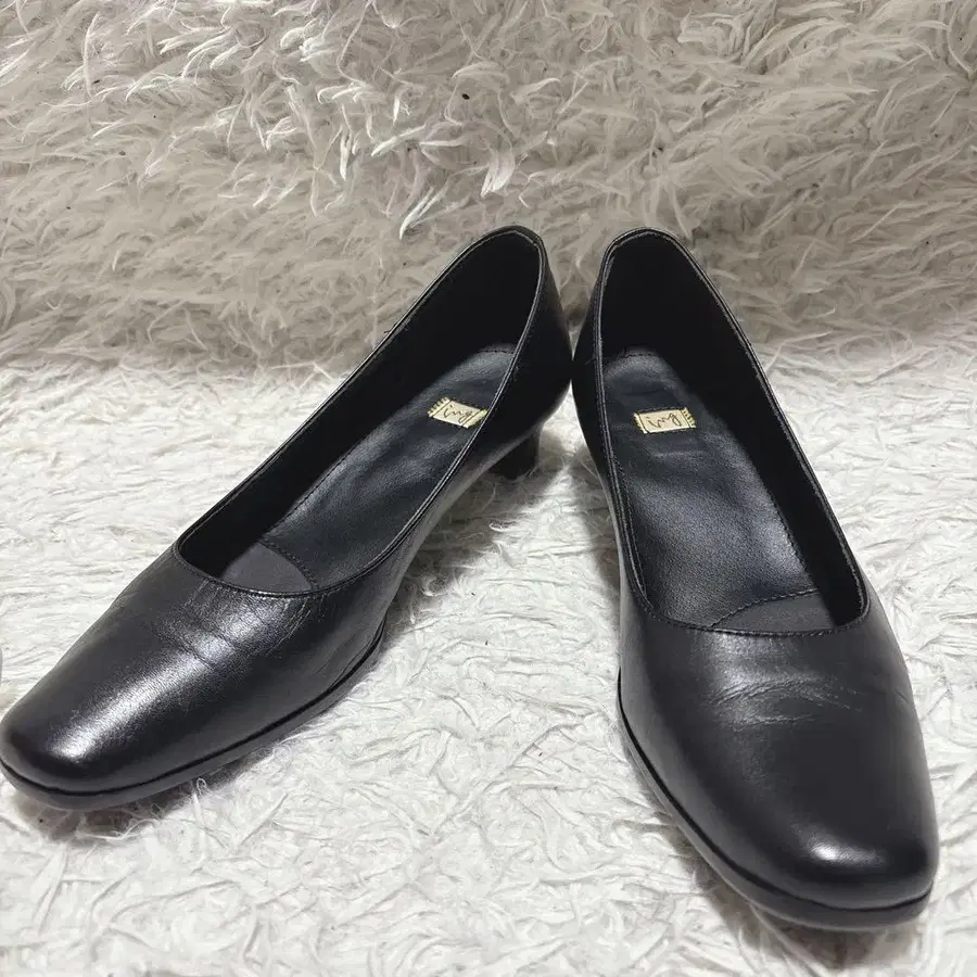 스퀘어토 디자인의 블랙 가죽 펌프스, 낮은 힐로 쾌적한 착용감.
