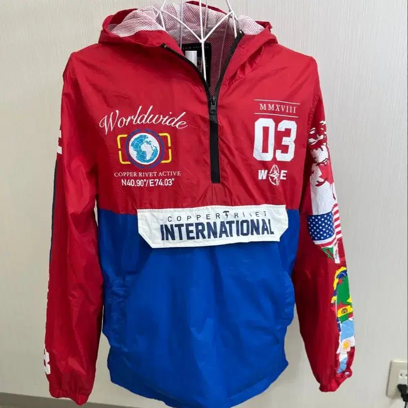 - 디자인: 프론트 지퍼, 후드 부착, 국기 디자인