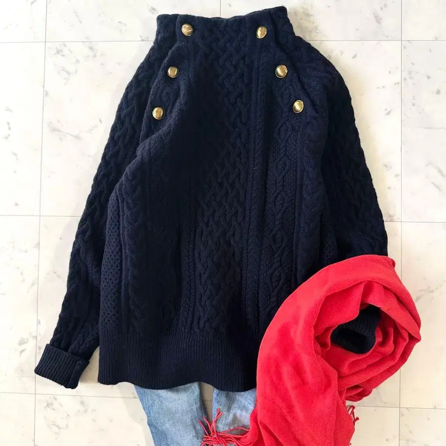 인기 프레임워크 해밀턴 아란 케이블 니트 네이비 골드 버튼 네이비 컬러