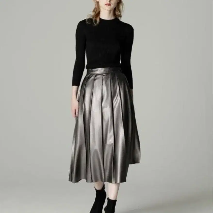 그레이스 콘티넨탈 에코 가죽 플리츠 스커트 실버골드