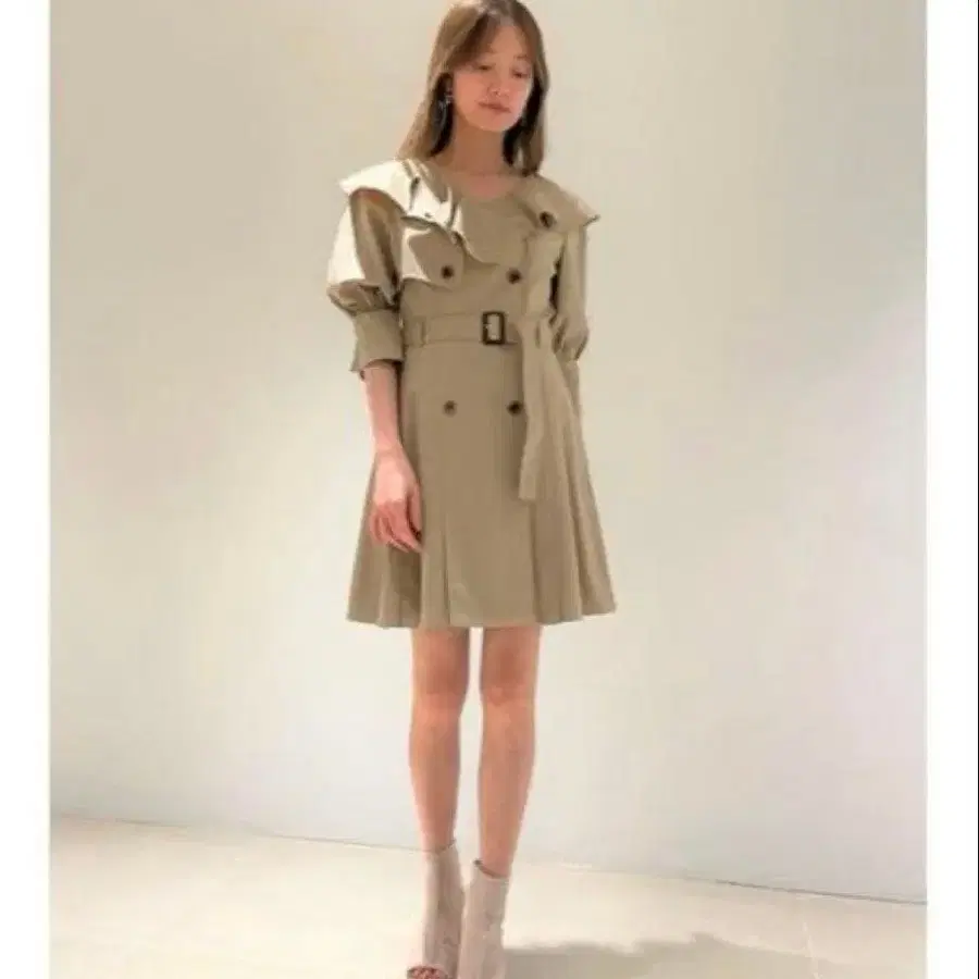 스나이델 프릴 트렌치 미니 원피스 베이지
