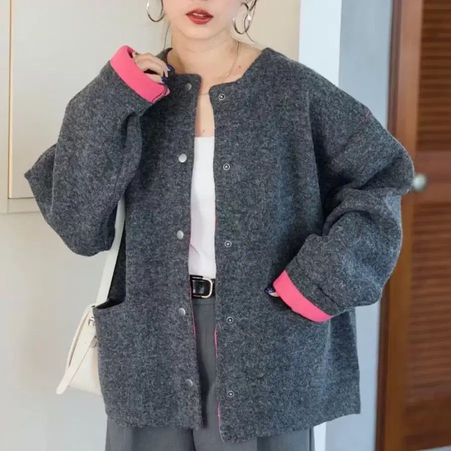 뒷면 배색이 세련된, 심플하지만 다른 사람들과 차별화되는 스냅 가디건