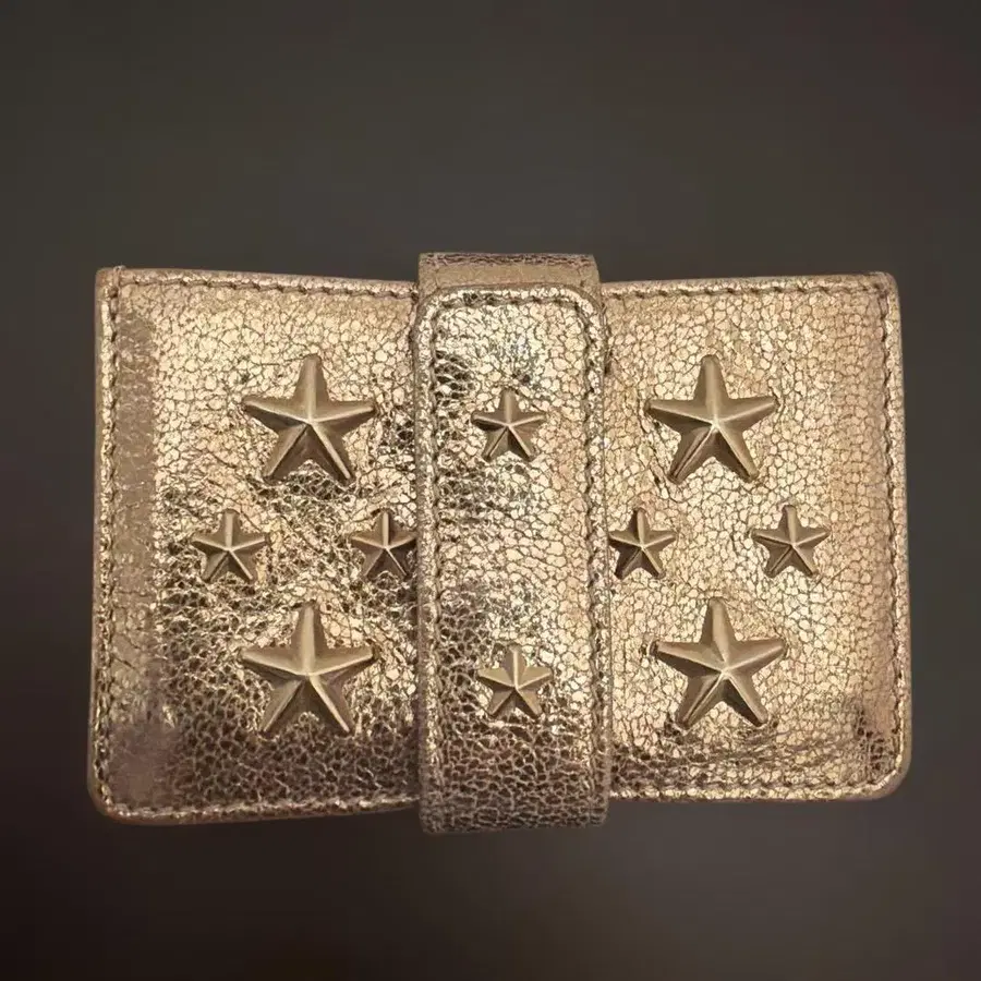 JIMMY CHOO 스타 스터드 티기 카드 케이스 골드 가죽