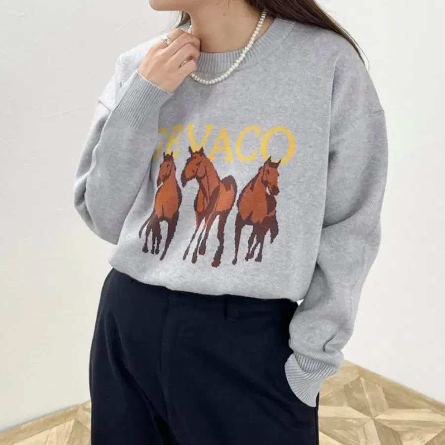 게바코 호스 자카드 니트 풀오버 스웨터 말 38