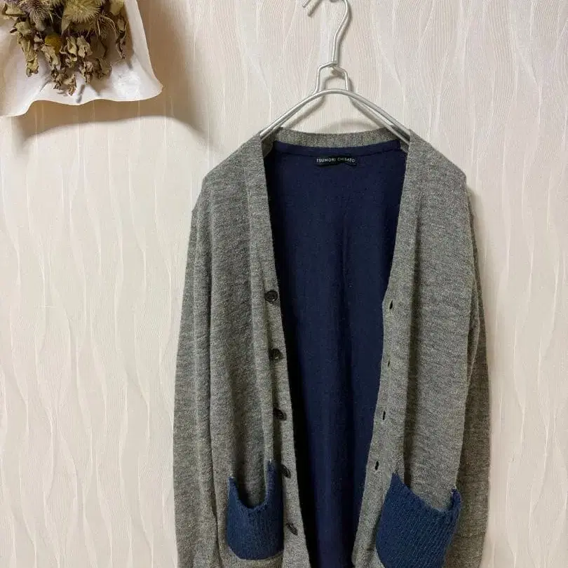 새상품급 츠모리치사토 가디건 알파카 혼방 울 그레이 포켓 M
