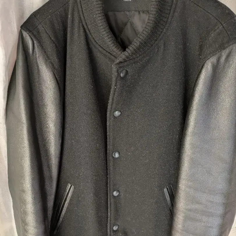 NANO UNIVERSE 블랙 바시티 자켓 양가죽(소매)