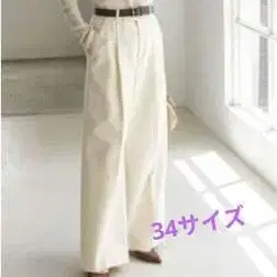 noble 울 갸바 슬랙스 팬츠 사이즈 34 화이트 와이드 팬츠