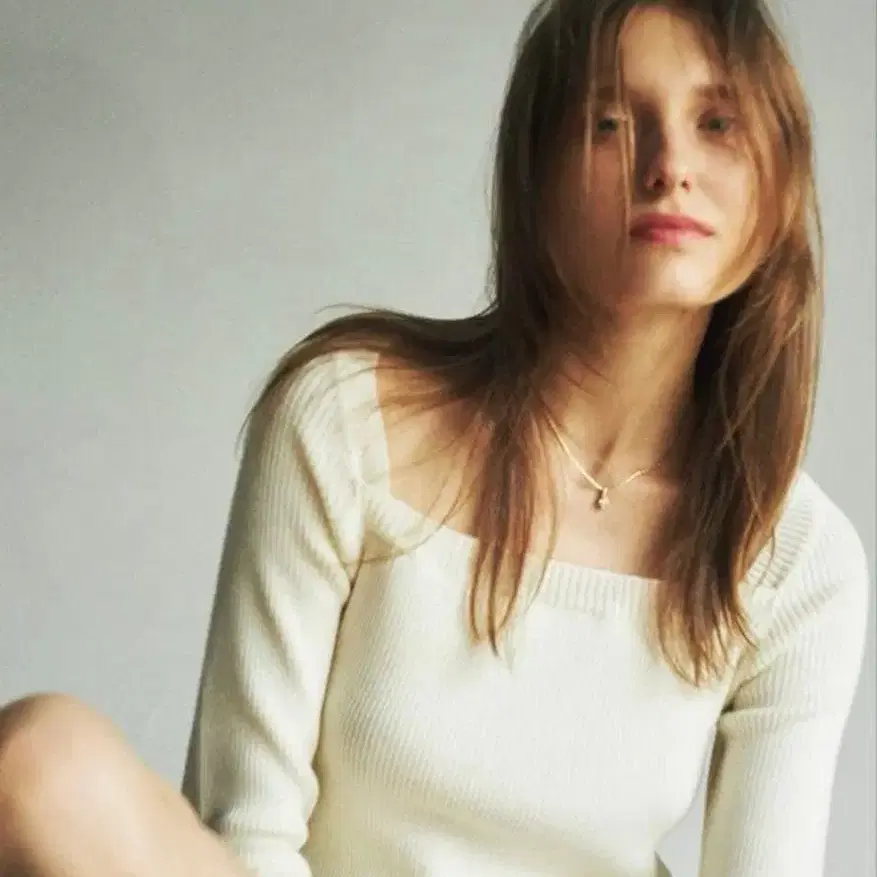 zoe 스퀘어 넥 트릭 니트 / 아이보리