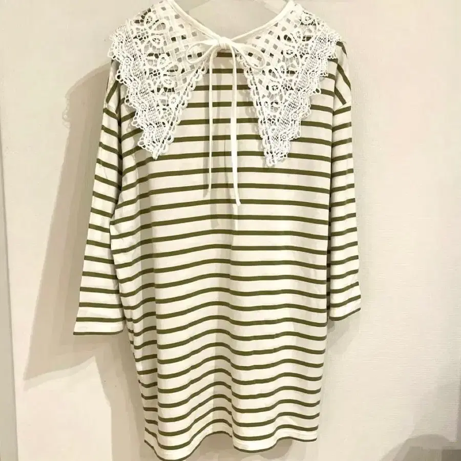 BEAMS HEART 레이스 카라 부착 7부 소매 T셔츠