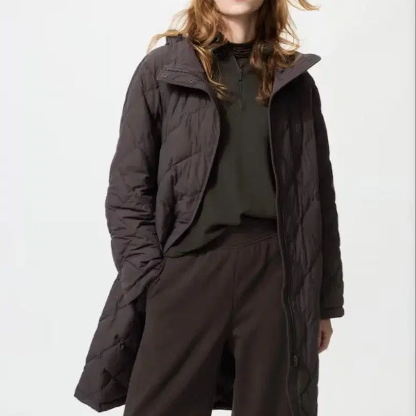 유니클로 퍼프 테크 롱 코트 릴랙스 핏 L 사이즈 다크 브라운