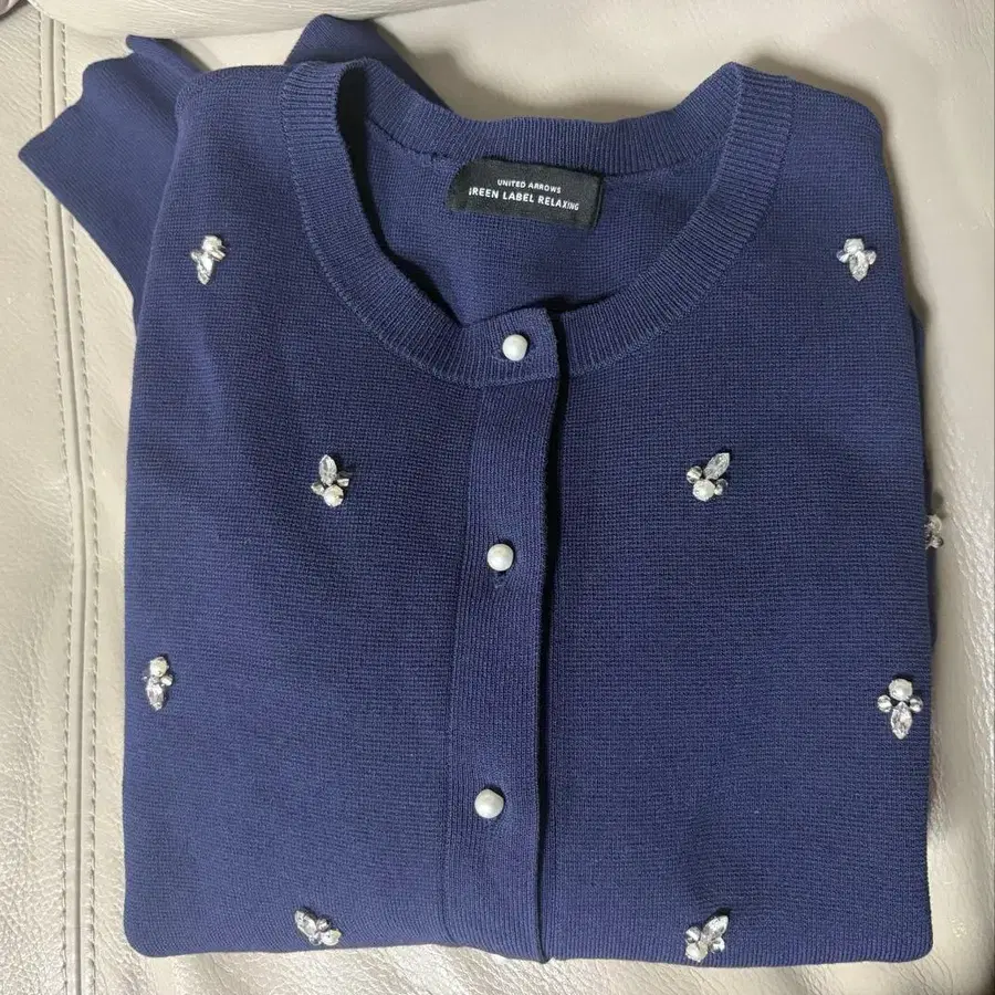 UNITED ARROWS green label relaxing의 도트 비쥬가 달린 니트 가디건입니다.