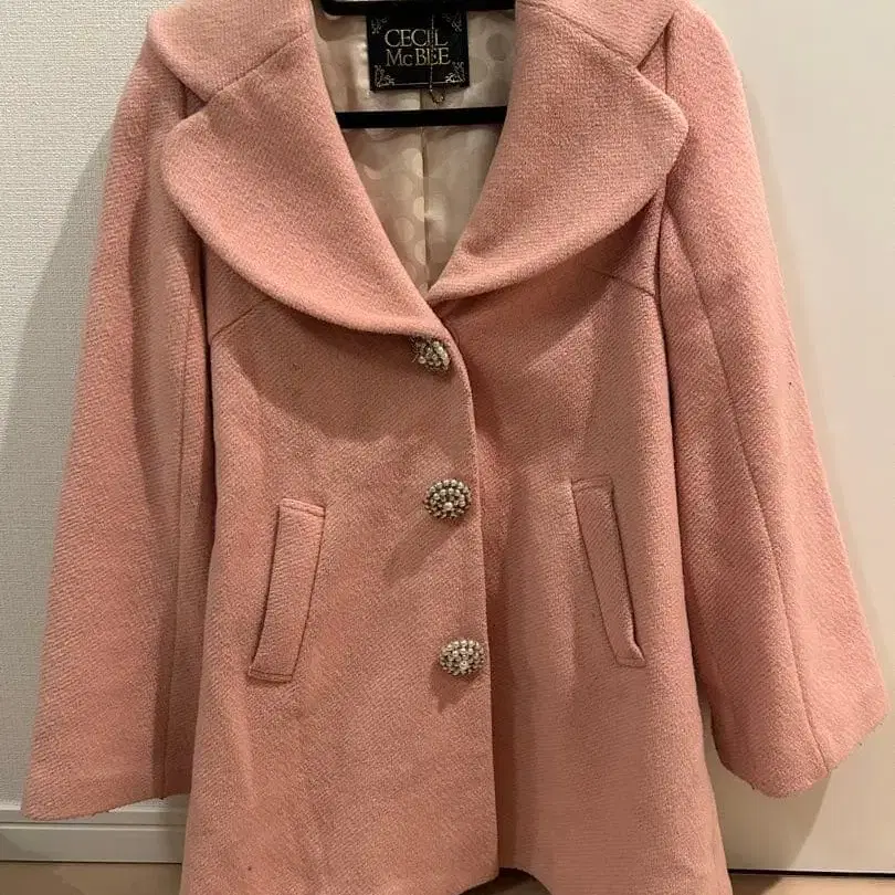 [세실 맥비] 피 코트 아우터 핑크 걸리시 귀여운