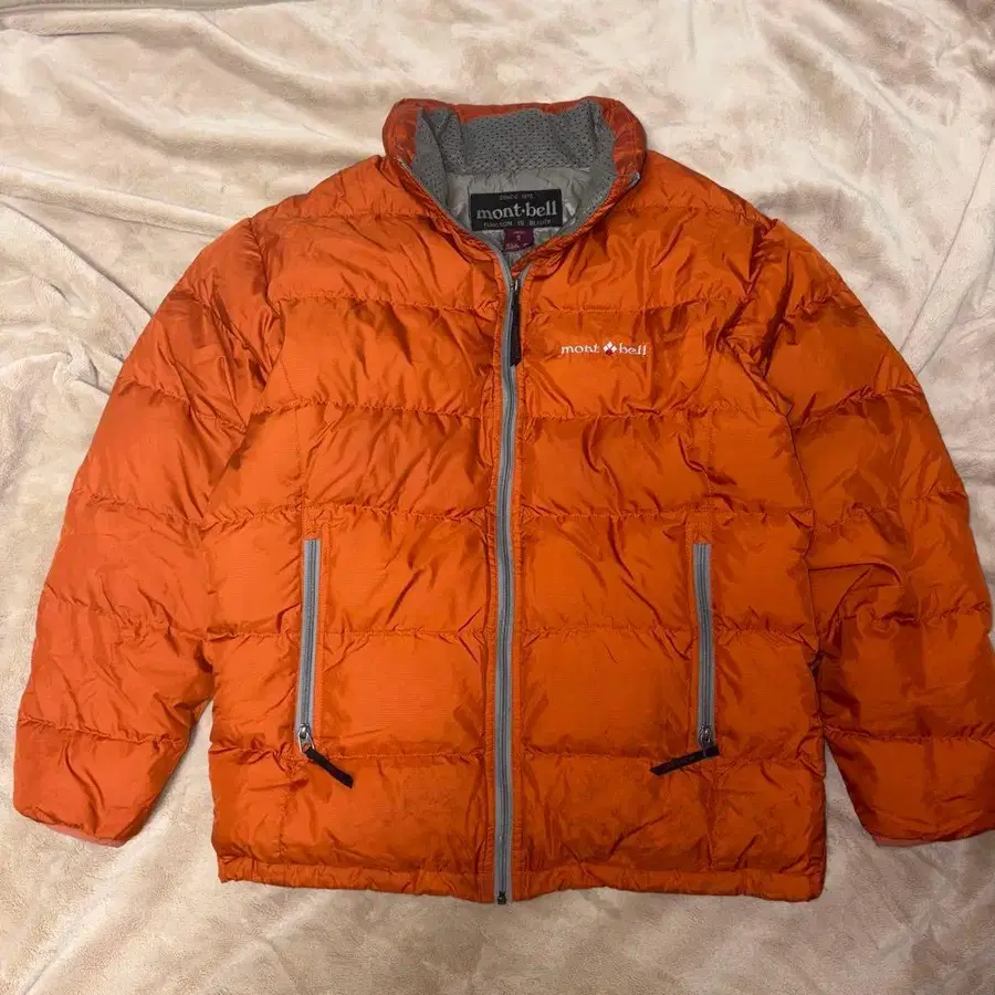 90s 몽벨 오렌지 다운 자켓 짧은 기장 드로 코드 포함